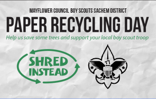Tax season is now over and Sachem District is holding a Paper Recycling Day Fundraiser on May 4th. A truck from New England Security Shredders will be at the Crescent Ridge Dairy in Sharon located at 355 Bay Rd, Sharon, MA 02067 from 12:00 noon until 4:00 PM. A minimum donation of $10 per box is suggested (although remember it is a fundraiser for the council's Investment in Character Campaign). [...]