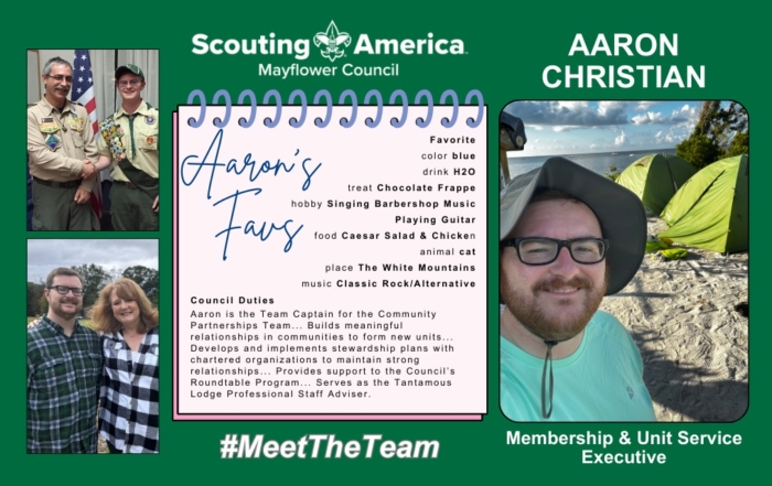 For our third #meettheteammonday on Mayflower Council’s social media, we sat down with Aaron Christian, Mayflower Council Membership & Unit Service Executive.